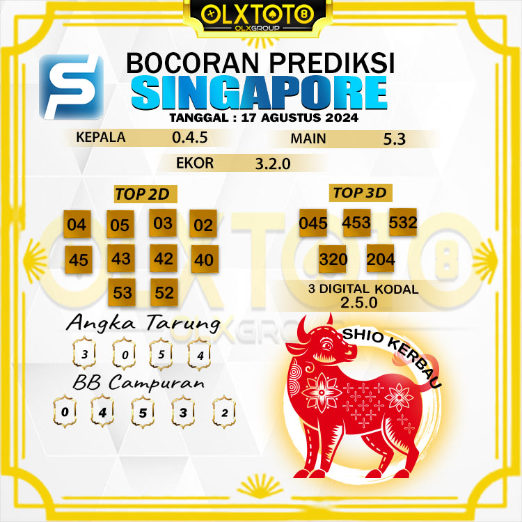 PREDIKSI SINGAPORE HARI SABTU 17 AGUSTUS 2024
