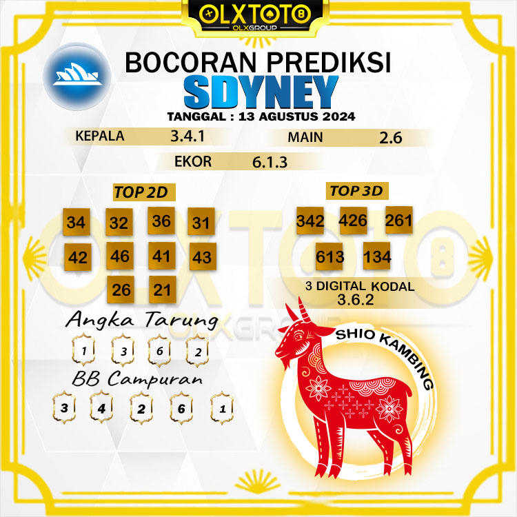 Berikut Syair Prediksi Togel Sydney Hari 13 AGUSTUS 2024